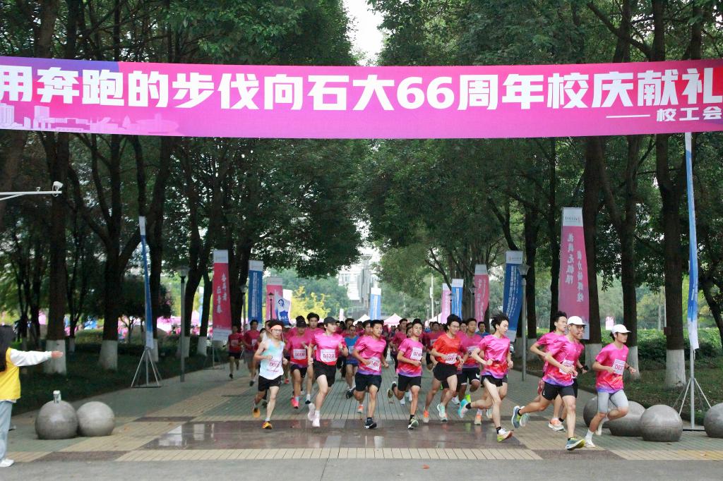 为营造庆祝新中国成立75周年的浓厚氛围,喜迎学校建校66华诞,我校隆重举行第三十届全民健身体育节开幕式暨首届特色马拉松校园跑,近八百名师生在秋风飒爽的石大校园奔跑,用坚持和毅力展现运动风采,用活力与激情点燃整个校园。校党委书记张烈辉参加比赛并宣布活动开幕,党委副书记、工会主席衡彤致辞。省纪委监委驻校纪检监察组组长、校党委副书记、纪委书记张明主持活动。党委常委、副校长李德海,副校长裴向军参加比赛。