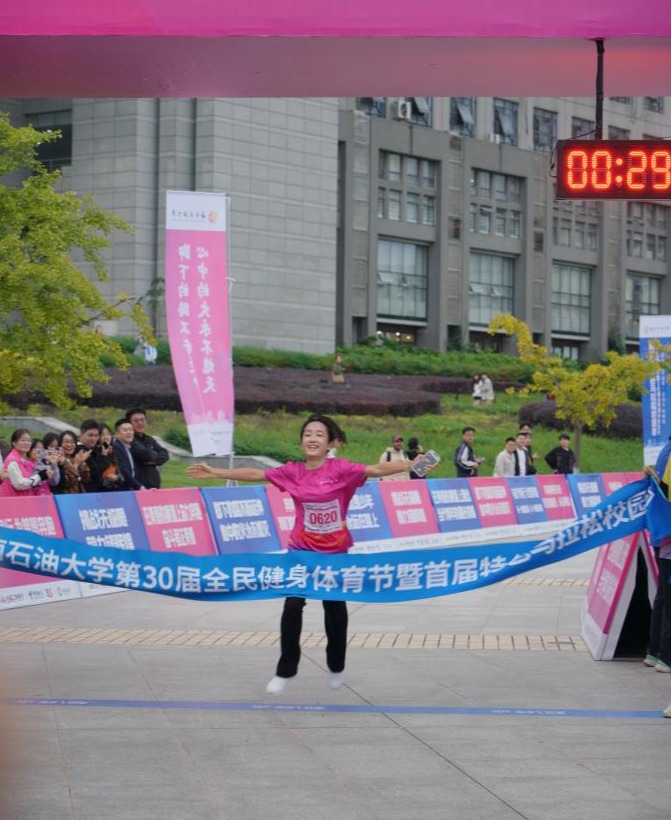 2023级石油工程专业张涵宇平时很少锻炼,为了突破自己,他坚持跑完了全程,跑到终点时已气喘吁吁。站在终点,他笑着与记者分享道:“真是一次挑战自己、超越自我的过程,跑完全程我就是自己的冠军!”