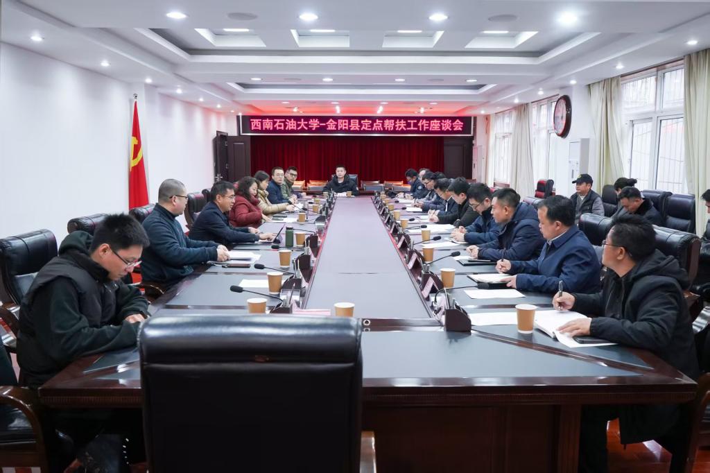 3月19日晚,衡彤一行与金阳县委、县政府举行定点帮扶工作座谈会,与县领导刘尧平、尚侠义、阿于木果及县相关职能部门负责人交流帮扶工作。衡彤表示,自2016年与金阳县结对帮扶以来,学校始终把定点帮扶作为一项重要的政治任务来推进。近日,学校党委常委会专题研究通过了《西南石油大学2025年定点帮扶金阳县及务科村工作方案》,学校将严格执行省委、省政府决策部署,校力所及、全力以赴满足金阳县新增的帮扶需求。蒲勇在会上通报了学校帮扶方案主要内容。