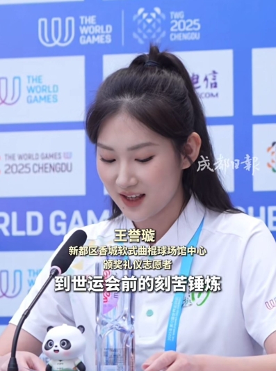 王誉璇说,每一滴坚持的汗水、每一次对细节的执着、每一份发自内心的热忱,最终都凝聚成专业与热情的服务。在世运会舞台上,我会带着大运会的成长与感动,让“小青椒”成为成都最温暖的名片。