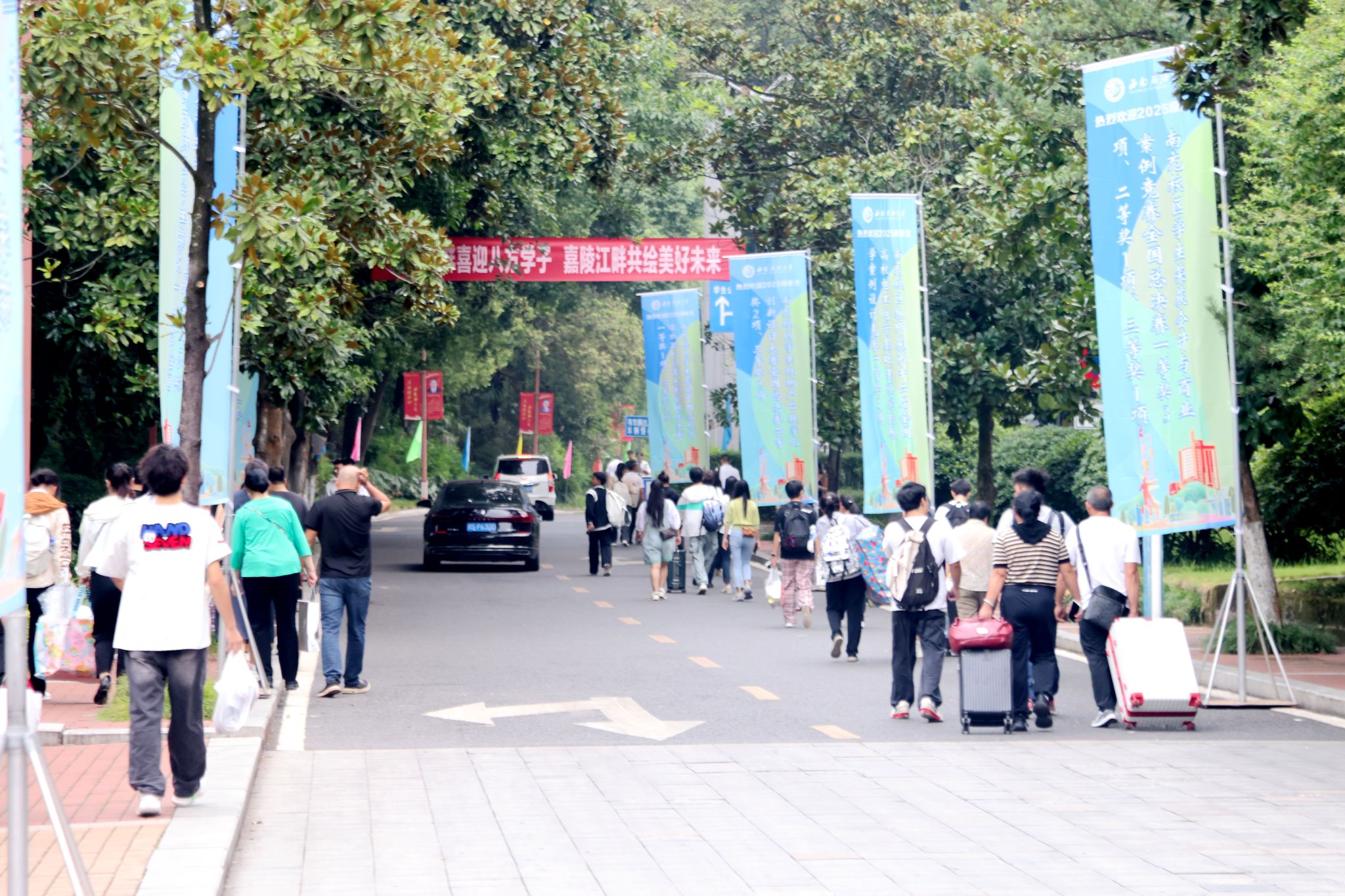 为给新生入学提供更全面的保障和便利服务,学校提前规划、周密部署、统筹联动,入学各项工作有序开展。在成都校区,从地铁站迎新点到各学院,沿途休息区随处可见,为新生及家长提供热水、解暑茶饮,并配备应急医药箱。一路上,校园巴士来回穿梭,免费运送新生和家长,为新生报到“最后一公里”提供便利。“学校很贴心,从地铁口出来一路都有志愿者和工作人员接力引导,提供服务!”经管院新生王凯旋的家长竖起大拇指。此外,两校区都专门设置了家长停车区,缓解家长停车压力,“刚进校就有人引导停车,非常有序,没想到学校考虑得这么周到!”一位来自四川内江的家长称赞。