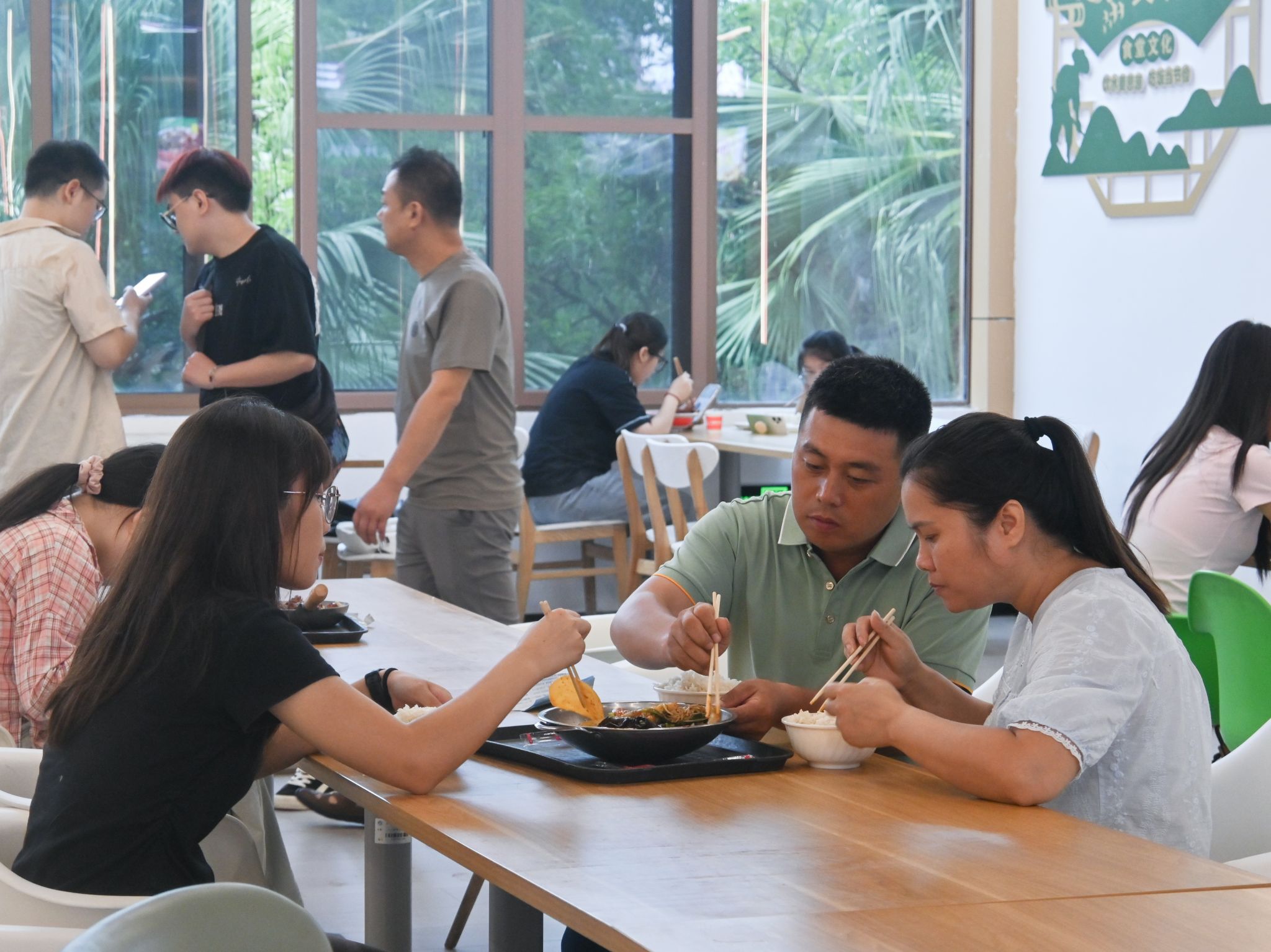刚把校园卡拿到手,艺术院新生陈家锐就带着父母走进食堂,体验开学第一餐。迎新期间,所有食堂延长供餐时间,并准备了免费的热汤、姜汤等,“菜品很丰富、卫生也很好,我们很放心!”不少家长品尝后点头称赞。