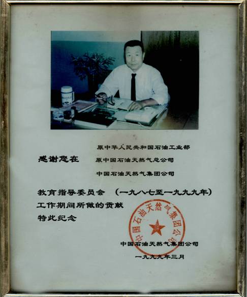 中国石油天然气总公司为崔汝樑同志颁发的纪念牌