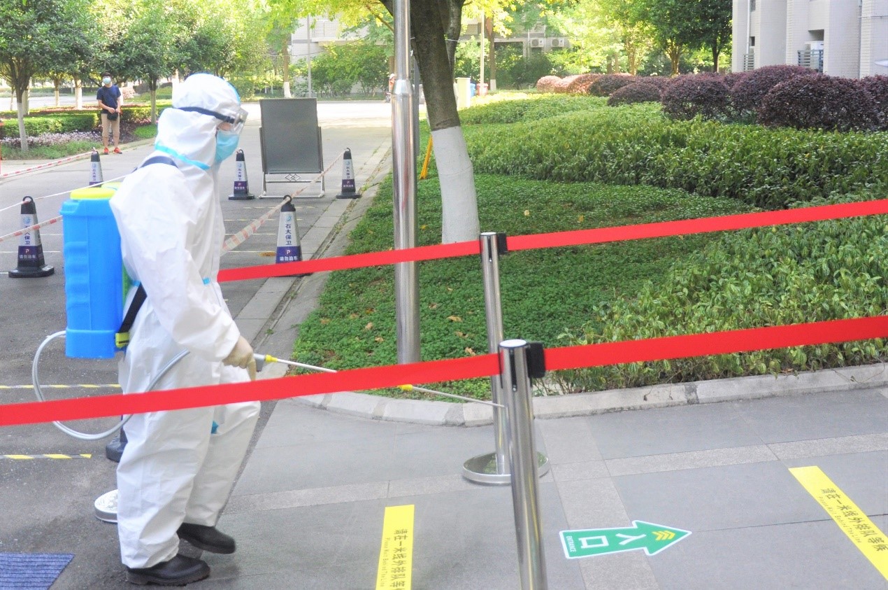 后勤工作人员在进行消杀