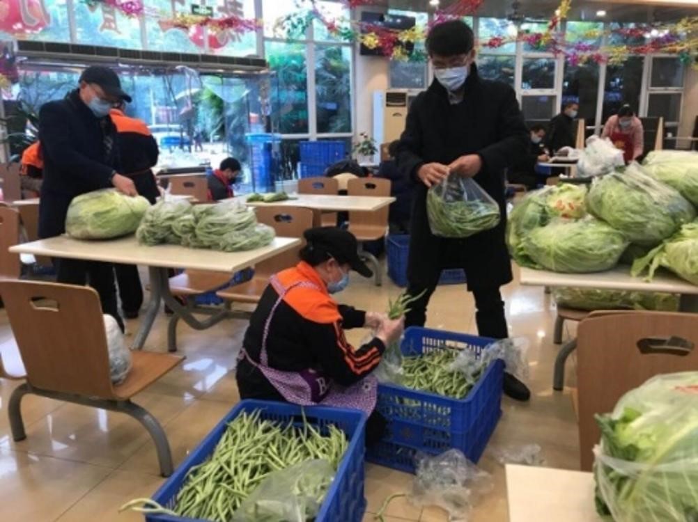 后勤工作人员为居家隔离教师提供送菜上门服务