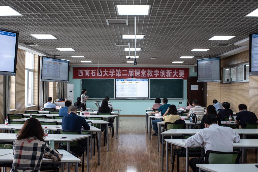 6月9日,西南石油大学第二届课堂教学创新大赛现场决赛在明理楼C区1202教室举行,来自13个教学单位的19个教学团队负责人在现场进行了教学创新成果的汇报展示和答辩。本次决赛评委由党委常委、副校长刘向君、教务处副处长、教学评估处副处长和教学评估与督导专家组成。综合初赛、复赛和现场决赛三部分的成绩,大赛评选出一等奖10项、二等奖15项。