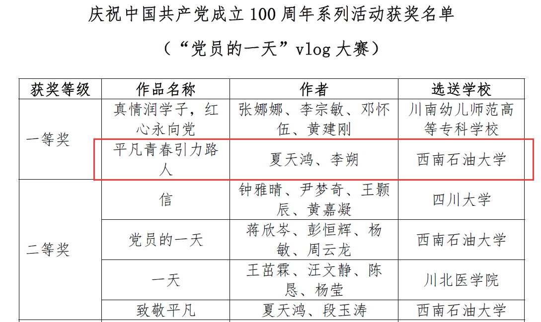 9月30日,四川高校网络思想政治工作中心、四川省教育厅易班建设与发展中心公布了四川省易班共建高校庆祝中国共产党成立100周年系列活动获奖名单。我校选送的作品获得一...[详细]
