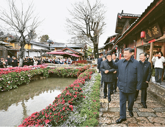 2025年3月19日至20日,中共中央总书记、国家主席、中央军委主席习近平在云南考察。这是19日下午,习近平在丽江古城考察时,与居民、游客互动交流。