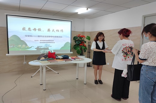 为进一步弘扬和传承中华民族传统美德,加强“导”“辅”育人成效,提高研究生的感恩意识,促进爱心的传递,经济管理学院于6月9日14点30分在学生公寓22栋“临溪书院”开展“感恩母校,薪火相传”经管院2022届毕业生回馈母校捐赠活动。经济管理学院研究生辅导员徐余跃与2022届毕业生代表参加本次活动。