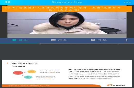 金骁然从四六级原题切入,提出了选择题试听一致原则与同义替换方法,帮助同学们快速记忆听力内容。此外,他提醒道:记忆听力高频词汇与熟练做题技巧相结合才是高分的关键。