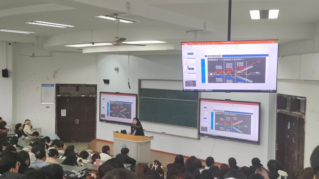 会议最后,李昕露以大学成长曲线图作为结尾来鼓励同学们在新学期继续努力奋斗,“昕昕向荣”,未来可期!