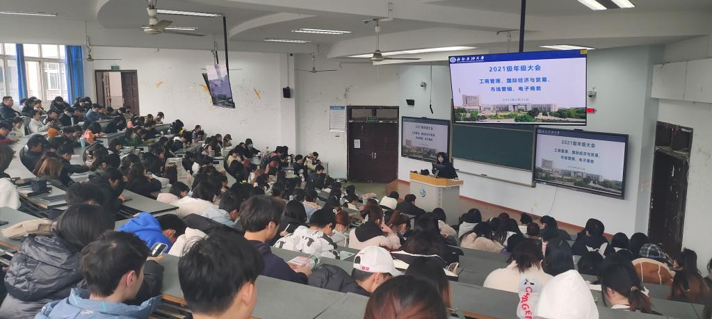 2月23日下午,为进一步分析和总结同学们上学期学习成果、激励同学们在新学期继续奋斗同时安排新学期各项活动和工作,学院辅导员李昕露于思学楼C210召开2021级工商管理、市场营销、国际经济与贸易、电子商务四个专业年级大会。