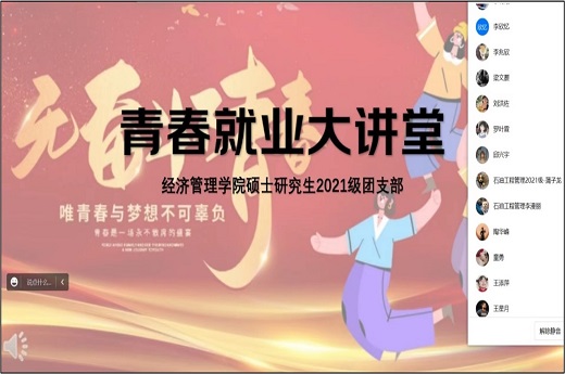 青春就业大讲堂可以帮助同学们拓展视野,了解更加广阔的职业选择范围和机会。为学习贯彻中央、省委经济工作会议精神,进一步做好高校毕业生就业工作,落实《共青团四川省委、四川省教育厅、四川省人力资源和社会保障厅关于在四川省各高校开展“青春就业大讲堂”的通知》要求,我院于今年5月启动“青春就业大讲堂”活动。经济管理学院硕士研究生2021级团支部于2023年5月11日成功开展此次活动。同学们更是积极参与,注册了智慧团建的130名成员全员参加。