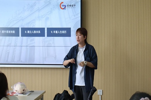 刘丽娜主要从出国留学优势分析和要求、热门院校推荐、案例分析等方面对同学们进行了留学指导讲解。她指出,同学们要想顺利留学、满意留学,必须提早做好留学规划和留学准备,提高自己的留学核心竞争力。刘丽娜就马来西亚,法国,英国,澳大利亚等热门留学国家的高校进行了分析,并进一步点明,要想更好地申请顶尖院校,实习经历必不可少。刘丽娜表示:“作为综合实力的最佳体现,高含金量工作相关经历往往是学校明确要求的软实力必备内容,硬指标相近的情况下,高含金量的名企实习发挥决定作用。”同时,高校学生寻求留学机会,应当抓住科研机会,尽量多的参加科研项目,积累留学经验。