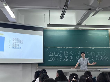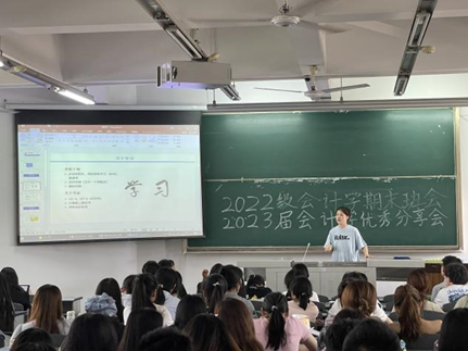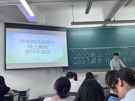 6月12日经济管理学院会计学专业2022级于教室博学楼B502召开了以“见微知著,砥砺前行”为主题的2022级会计学期末班会及2023届会计学优秀生经验分享会。