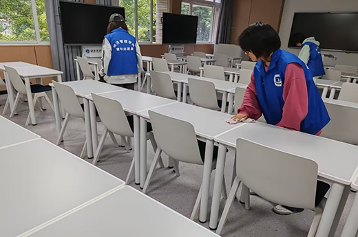 活动开始前,负责人陈亮慧向在场志愿者介绍了清扫博学楼的相关事宜,明确提出了活动要求与注意事项,并依次为志愿者发放志愿服。随后,志愿者们拿起扫帚、抹布等劳动工具投入到工作之中。活动进程中,志愿者们配合默契、分工合理,整个过程秩序井然。历时一个半小时,博学楼教室焕然一新。当被问及此次活动的感受,电子商务2023级邹可欣表示:“此次清扫活动为我们上课创造出了更加洁净的环境。同时,也让我们体会到了为大家服务的幸福感,并且更加深刻地理解了劳动的内涵以及意义。”