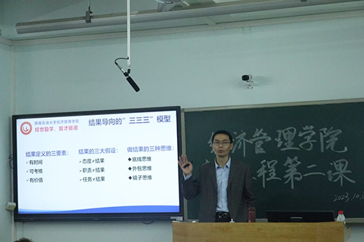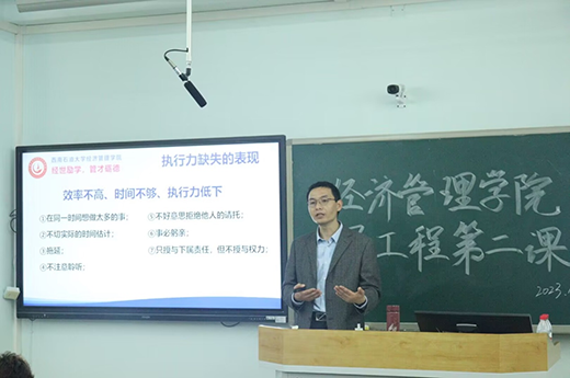第二课上,学院党委副书记、纪委书记曾有为作为主讲老师,以“目标设定与执行力提升”为主题,用幽默平和的语气向学员们讲解了如何管理好一个团队,处理好团队里的责任关系,并提高个人的执行力,出色地完成自己的工作;教导学员要善于运用SMART原则要建立可量化的目标,并对目标进行细化、度量以更好地完成任务。此外,曾有为老师用猴子管理法生动地向学员们讲述了作为领导者或管理者如何做好团队内的任务分配,让下属保质保量地完成任务的同时也能得到锻炼提升自己的各项能力。在课程最后,曾有为老师用五条标准告诉学员如何完美地做好自己的工作,并展示出自己的价值。
