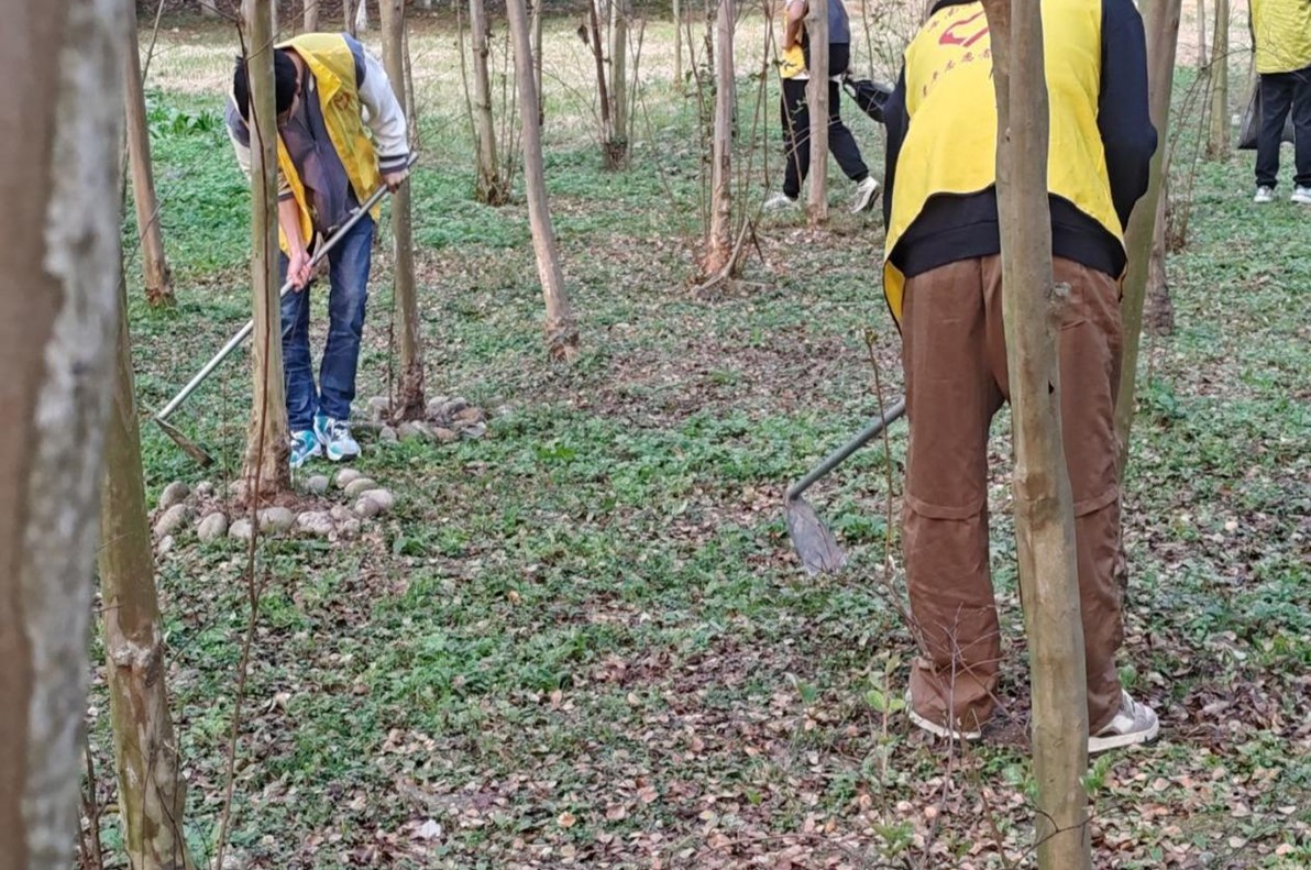 图 2志愿者清扫“学子林”现场