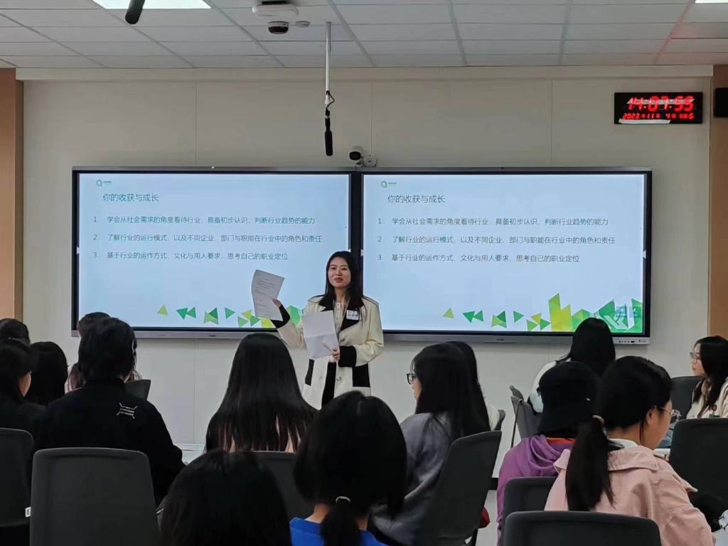 在讲解职业探索的过程中,志愿者老师通过破冰游戏让同学们快速联络起来,并分别向同学们介绍了什么是职业、你的职业规划是什么等内容,引导学生进行职业规划,通过让同学们制定个人简历介绍,将自己最优秀的一面展现出来。紧接着进行了无领导小组讨论,学生分为5个小组,每个小组有一位指导老师,大家针对一个企业问题分别发表自己的观点,各小组展开了交流讨论,气氛热烈。最后是模拟面试环节,让刚刚进入大学的同学们第一次近距离的感受到面试的紧张,并且了解了面试的具体形式和内容,也对职业发展有了更多的认识和思考。