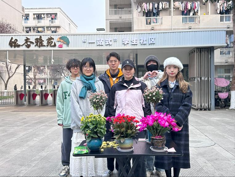 以花育人,人建社区。为帮助同学们提升审美素养、培养劳动精神,“一站式”学生社区精品项目“‘花香满楼’——共赴‘寻找’花香之旅”团队分别于12月10日、12月20日在银杏雅苑门口举办花展、手工品制作活动。