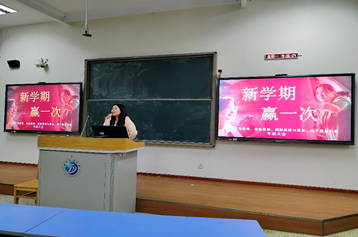 3月4日晚,工商管理、市场营销、国际经济与贸易、电子商务专业2021级在思学楼B210教室举行开学年级大会,本次会议以“新学期,赢一次”为主题,由辅导员李昕露主持,四个专业全体同学参与。