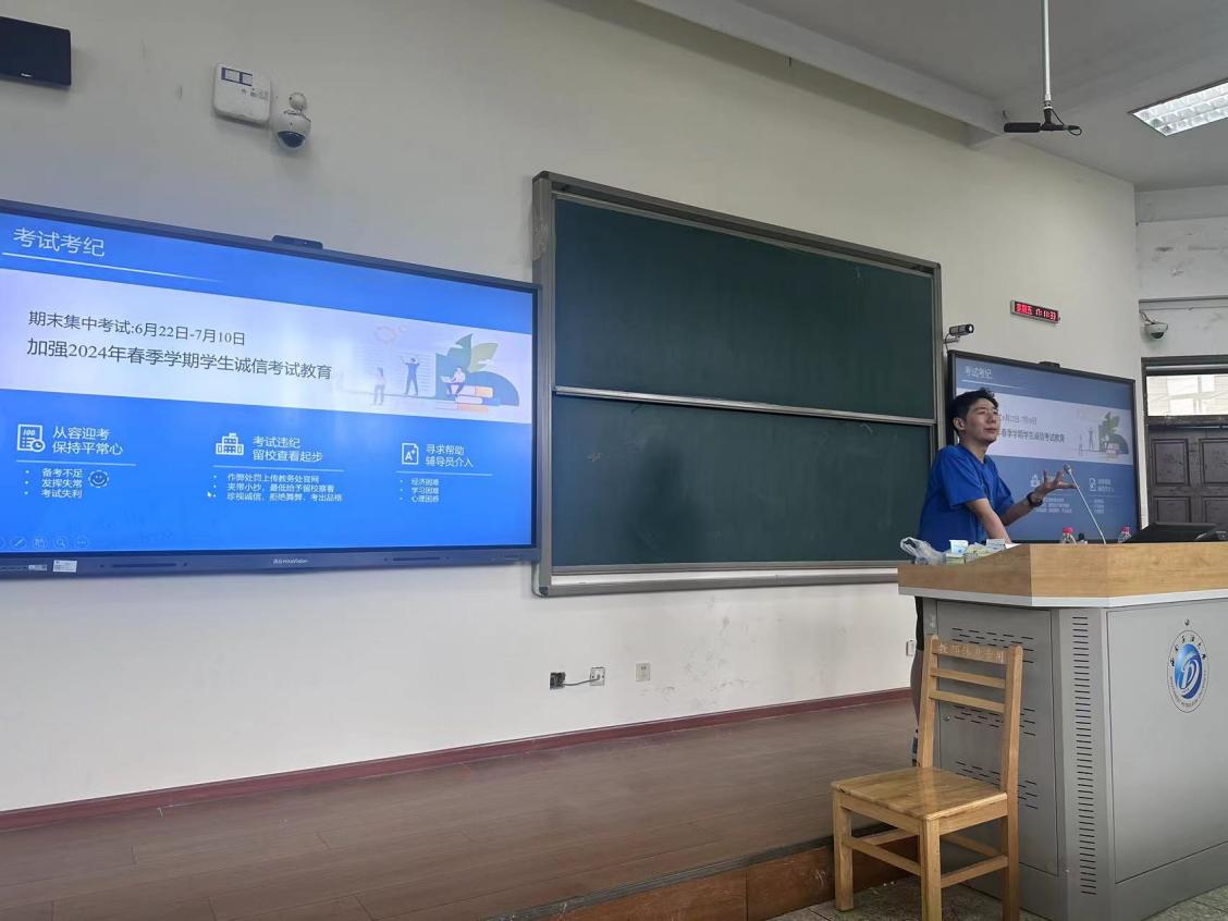 最后,周士越老师对本次班会进行了总结。他希望同学们能够牢记从容应考、坚守诚信的原则,在考试中发挥出自己的最佳水平;同时,也要学会在遇到困难时积极寻求帮助,不断提升自己的学习能力和综合素质。他相信在大家的共同努力下,一定能够营造一个公平、公正、诚信的考试环境。