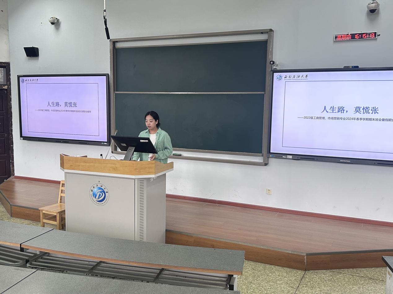 6月27日下午,市场营销、工商管理专业2022级在思学楼C210教室举行期末年级班会,本次班会以由辅导员冉玉嘉主持,两个专业全体同学参与。