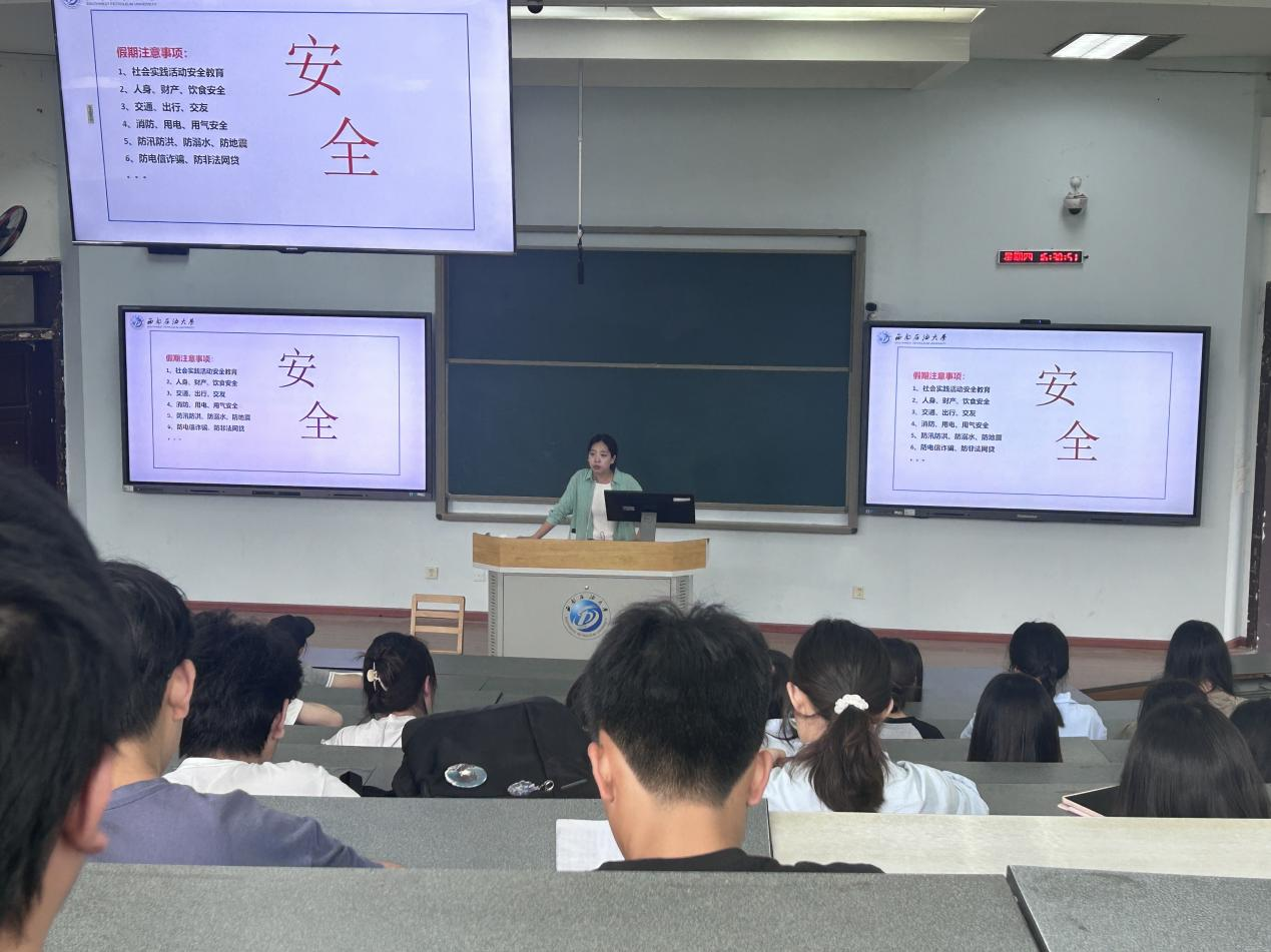 本次班会主要围绕假期安排、学期总结、安全教育、诚信应考、网络行为规范、假期规划展开。并强调了人身安全、消防安全、网络安全等问题。随后,冉玉嘉向同学们强调认真备考,诚信应考的重要性,向同学们展示学生手册中考试违纪、作弊处理办法,并举例告诫同学们一定要认真复习、诚信应考。最后,冉玉嘉通过两个专业的毕业生去向情况希望同学们认真规划假期、珍惜时光,思考规划自己未来的人生方向,并给同学们布置了制作一份自己的个人简历的暑期作业,为同学们提供简历指导。