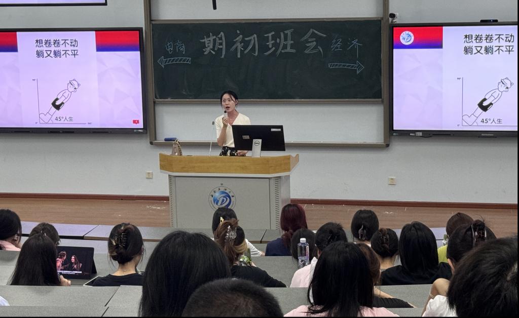 9月4日,我院2022级经济学和电子商务专业的同学在思学楼C210召开主题为“翻转‘45度’,拉满大三加速度”的年级班会,针对即将到来的大三学期进行综合性规划指导会。本次班会旨在鼓励学生积极面对未来挑战,增强安全意识,并详细解读了学校的资助政策,2022级经济学和电子商务专业全体学生参会。班会由辅导员申成琳主持。