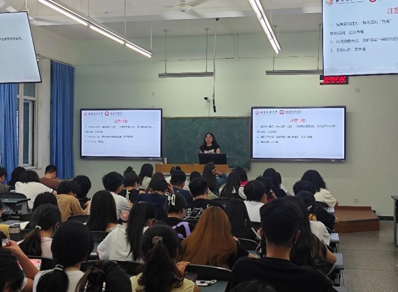 9月8日,2023级工商管理专业在明志楼B302举行大二新学期“讲赛践”主题班会。此次班会由辅导员张希主讲。