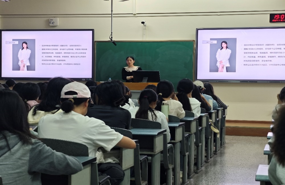 2024年10月15日,信永中和会计师事务所高级负责人田晓为我校经济管理学院2022与2023级的学生介绍会计师事务所的工种业务与用人标准,并为同学们提供了就业建议。