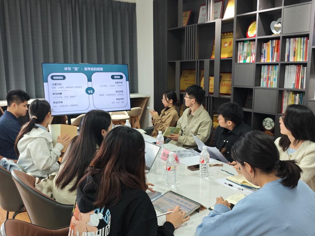 活动期间,选手们依次进行了职业生涯规划汇报。张亦驰老师针对选手们的职业规划进行了深入剖析,并从大赛经验出发,给出了具体的建议和指导。参赛选手们积极互动,纷纷提出个人观点,讨论职业生涯问题,现场气氛活跃而不失秩序。同时,张老师与申老师对教师在指导学生备赛等方面进行了探讨交流,深度剖析了当前就业市场趋势,强调大学生应主动适应市场变化,合理调整就业期望;教师应当尽己所能,为学生争取良好的就业平台与机会。张老师还提到,要指导学生关注职业的可持续发展,为可能出现的风险做好准备。