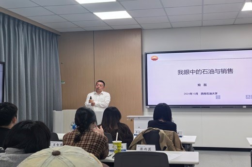 为提升学生对专业的认知,提升职业素养和综合能力。10月18日,经济管理学院市场营销专业邀请中国石油四川销售公司营销专家宛磊走进市场营销2023级专业学生专业课的课堂,进行了题为《我眼中的石油与销售》的专业分享,课程由市场营销教研室梁琳老师主持。