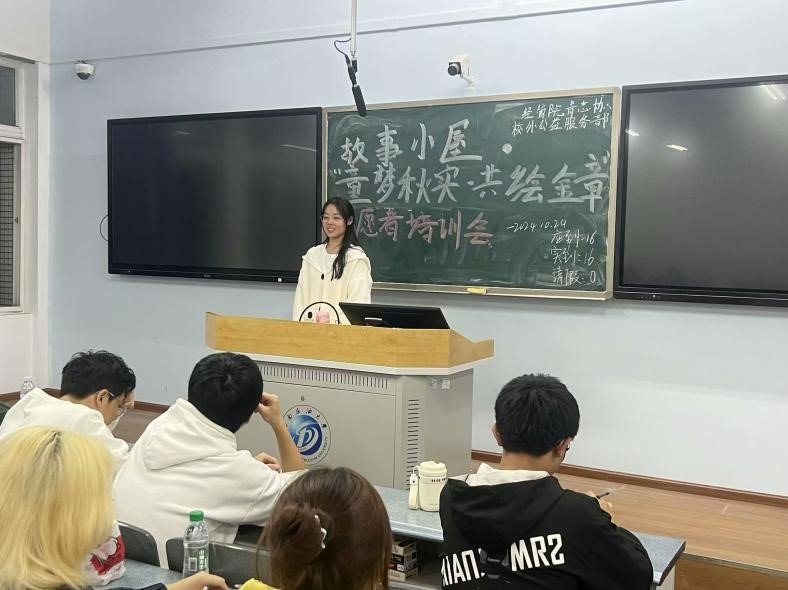 为增强新一届青年志愿者的综合素质,进一步推动我院志愿服务工作的高质量发展。10月30日,我院青年志愿者协会校外公益服务部在博学楼A207开展了青年志愿者协会骨干培训会。本次培训会以【志愿石大·爱在社区】故事小屋“童梦秋实·共绘金章”活动为切入点开展。