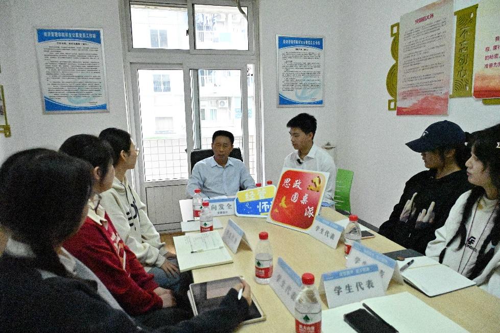 学院6位学生代表围绕罗平亚院士故事的启示以及自身未来职业规划等话题与向发全展开讨论。对于学历和实践经验哪个更关键的问题,向发全老师强调理论与实践并重,建议同学们努力学习理论知识,提升自我认知水平,同时积极寻找机会参与实践,巩固提升解决实际问题的能力。向发全还分享了个人职业发展实例,鼓励大家认真对待每一件事,保持对生活的热爱和对集体的归属感。