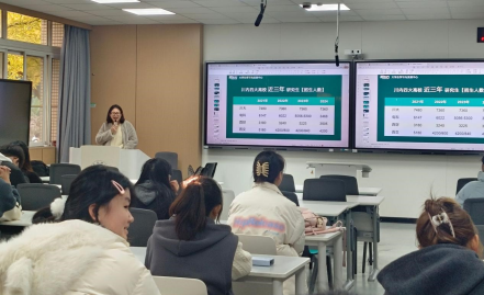 主讲嘉宾新东方的谢宁老师为在场同学带来了精彩的考研信息分享。谢老师首先分析了当前考研面临的严峻形势,指出考研人数正逐年攀升,竞争愈发激烈等。随后,他详细讲解了如何合理安排复习计划、提高学习效率,以及择校和备考策略等关键问题。谢老师积极与同学互动,耐心解答同学们提出的疑问。同学们纷纷表示,通过此次讲座,对考研有了更深入的认识,也更加明确了未来的备考方向,为个人成长目标提供了更明确的规划。