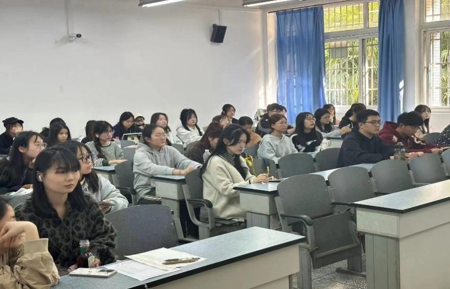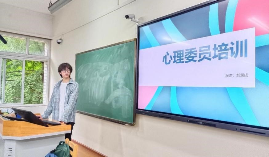 在此次培训中,主讲员郭慧成将此次培训内容分为四个板块,分别从委员职责、普及知识、技巧和相关细节进行讲述。从心理委员的工作职责,基础的心理知识,沟通技巧讲到如何注意到同学们的情绪变化并对此做出反应,引导同学们拥有良好的心态,构建更好的校园心理健康环境。在讲述过程中,同学们认真听讲,并将关键的内容以手写的形式记录了下来。同时主讲员的讲解深入浅出,讲解内容生动有趣。除此之外,主讲人还分享了自己的经验和体悟,现场氛围融洽和谐。