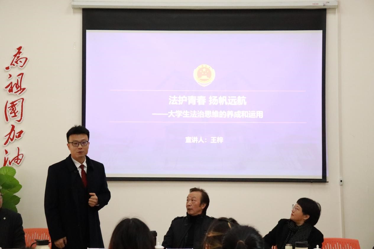王梓作“大学生法治思维的养成和运用”主题分享。他介绍了人民检察院的地位和职责、人民检察院的职权,用详实案例,进行了法制教育,指出,网络不是法外之地,普通民众在参与网络活动时,有责任有义务维护网络空间的纯净,做到不造谣、不传谣、不信谣。要善于运用法治思维来解决日常工作、学习、生活中碰到的各种问题,既要学会利用法律武器来保护自身权益不受侵害,同时也要拒绝从事违法行为去伤害他人。