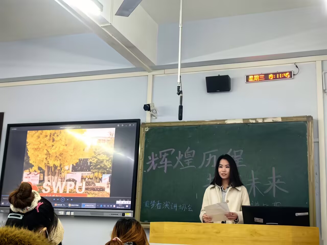 12月25,追梦者演讲协会于12月25在思学楼C202举办了“辉煌历程,共筑未来”主题演讲比赛。本次活动旨在为同学们提供一个抒发爱校情怀、展现精神风貌的平台,凝聚起推动学校发展的强大力量。