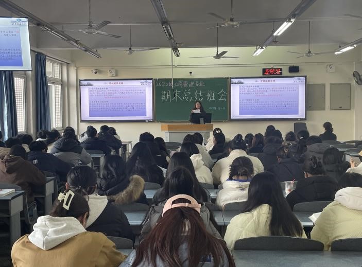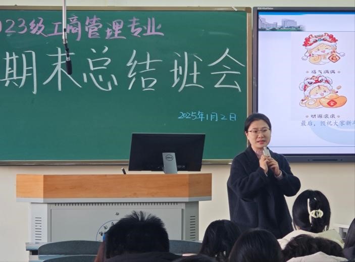 1月2日,2023级工商管理专业班会在博学楼B302顺利召开。此次班会由辅导员张希老师和王娟老师主持,旨在回顾过去一学期的学习成果,为即将到来的寒假和新一年的学习生活制定明确的规划。