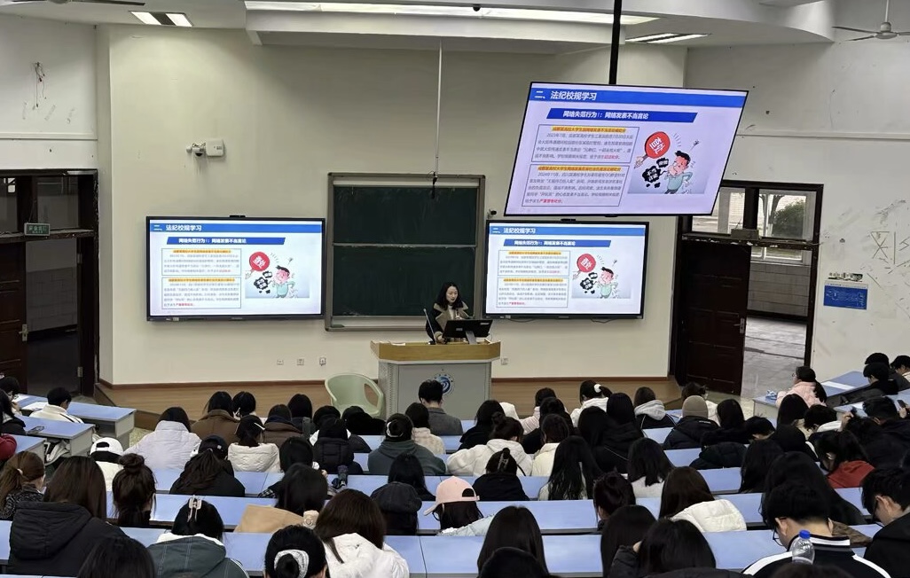 为进一步提升学生的安全防范意识,增强法纪观念,促进学生身心健康发展,2月23日,会计学、市场营销2024级于思学楼B110组织开展了安全法纪健康专题学习班会,辅导员袁桔主持本次班会活动。