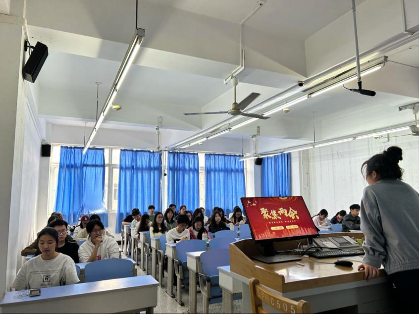 为检验同学们对两会知识的掌握程度,活动特别设置了知识问答环节。题目涵盖两会的基本常识、政府工作报告要点以及热点提案等内容。团支书对本次团组织生活进行了总结,并倡导同学们持续关注两会动态,深入学习两会精神,将两会精神融入到日常学习和生活中,积极践行社会责任。