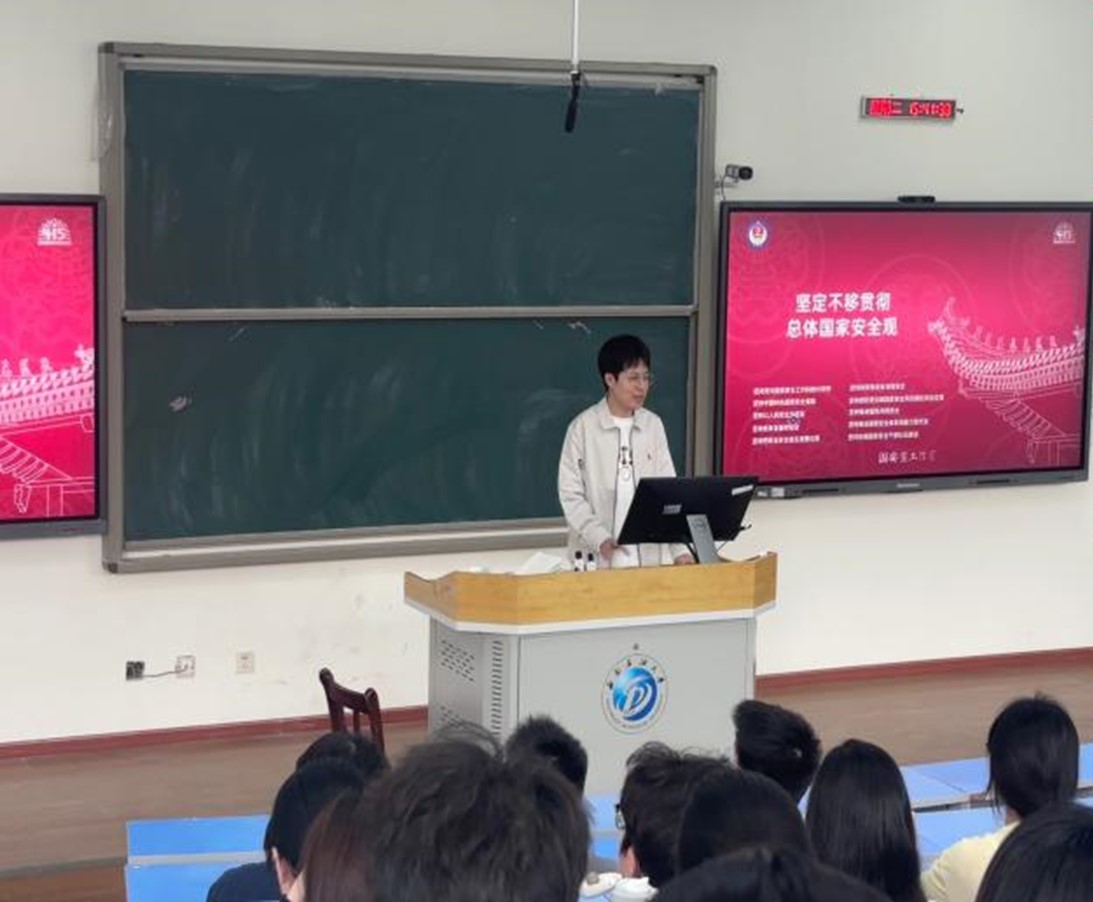 王子昀以党的二十大报告中关于国家安全的重要论述为切入点,围绕政治安全、经济安全、社会安全等16个领域,结合"一带一路"经济安全案例、数据安全法实施要点等,深入浅出解读总体国家安全观的核心内涵。王子昀强调:“当代青年应胸怀‘国之大者’,既要学好专业知识服务国家发展,更要筑牢意识形态防线,以实际行动守护国家安全。”