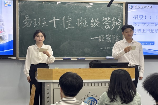 答辩中,24级工商管理二班答辩人王鹏翔、蒋沛纹围绕团队思想建设、学风建设、文化建设和生活建设,分享“易”起跟党走的实践经验;24级经济学一班马瑞韩、曾虞芯聚焦密切班级联系、网络共建和学风建设,展现班级活力。24级电子商务二班赵士翰巧妙类比电商产品,从价值引领、学风建设、班级凝聚和专业素养等方面,阐述“易”学易懂的学习理念与微社区活动成果。各班级答辩角度多元,从不同切入点展现易班建设成果。