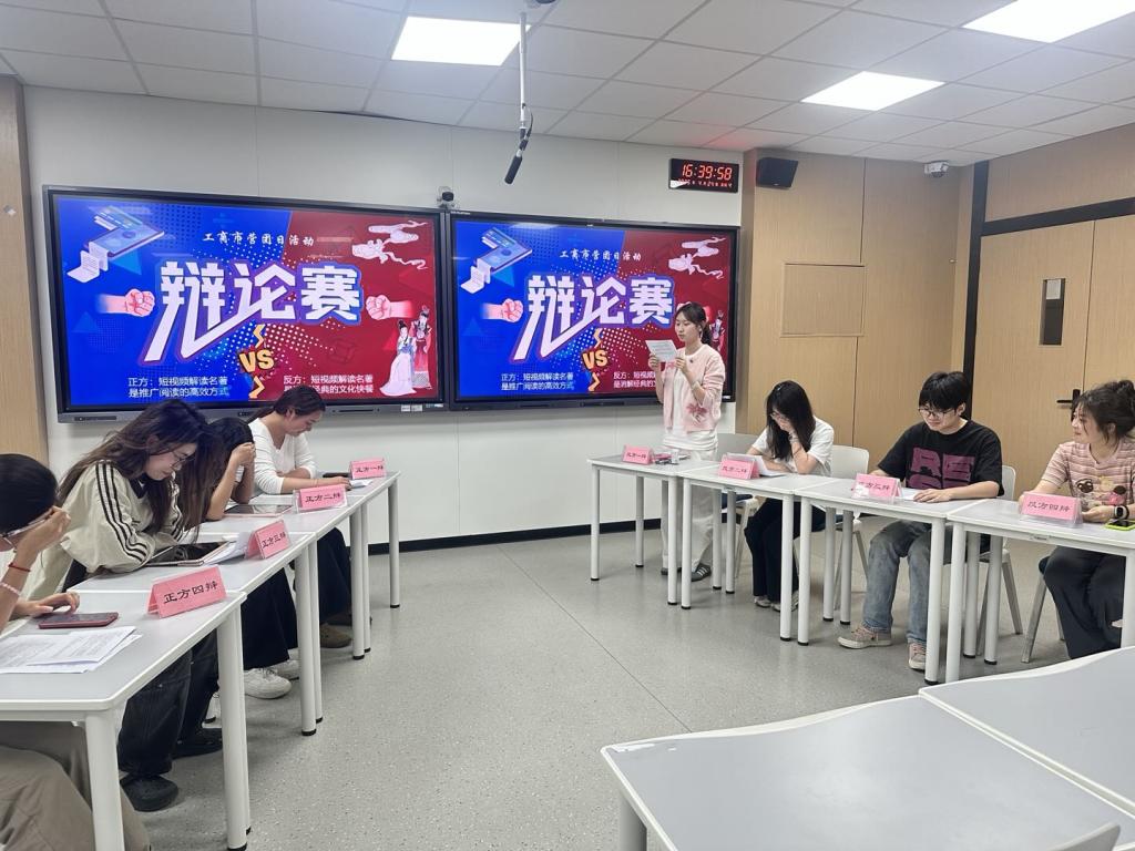 活动的重头戏——“短视频解读名著是否高效推广阅读”辩论赛激烈展开。正反双方旁征博引,结合数据、案例展开交锋。正方以名著类短视频高播放量带动纸质书销量增长为例,提出短视频是激发阅读兴趣的有效途径;反方则指出短视频可能导致经典内涵被消解,影响深度阅读。双方的精彩辩论,引发了同学们对新媒介与经典阅读关系的深入思考。
