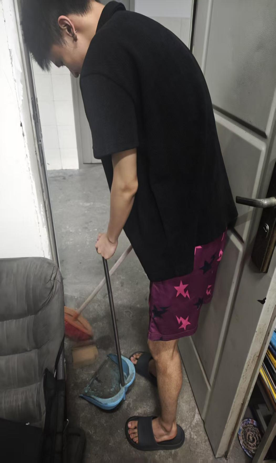 下午2点,班级同学在生活委员带领下领取清洁工具,迅速投入劳动。教室内,同学们分工明确:有人细致擦拭黑板和讲台,有人整理凌乱的课桌抽屉,还有人用长杆扫帚清理电扇和灯罩的积灰。寝室区域同样热火朝天,学生们搬动床柜清扫死角,将闲置物品分类回收,用消毒液擦拭门把手和开关面板。劳动过程中,大家互帮互助,原本杂乱的储物架被重新规整,蒙尘的窗户玻璃焕然一新,走廊上堆积的废弃纸箱也被清理一空。