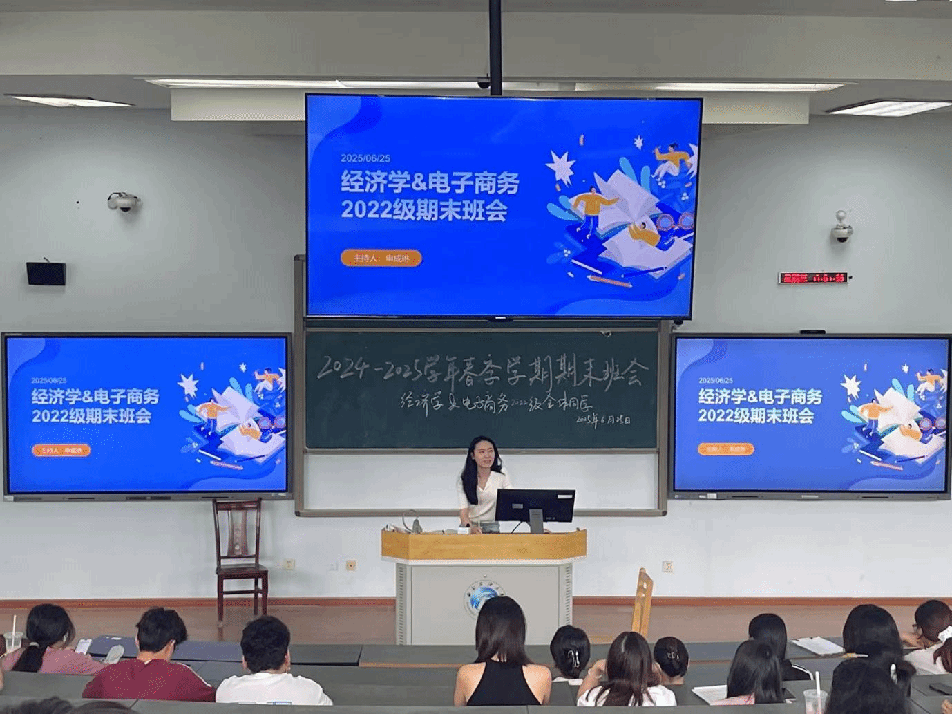 2025 年春季学期已悄然步入尾声,为全面总结本学期的学习生活成果,科学规划期末冲刺与暑期安排,6月25日,经济学与电子商务 2022 级全体同学于思学楼开展了期末班会。