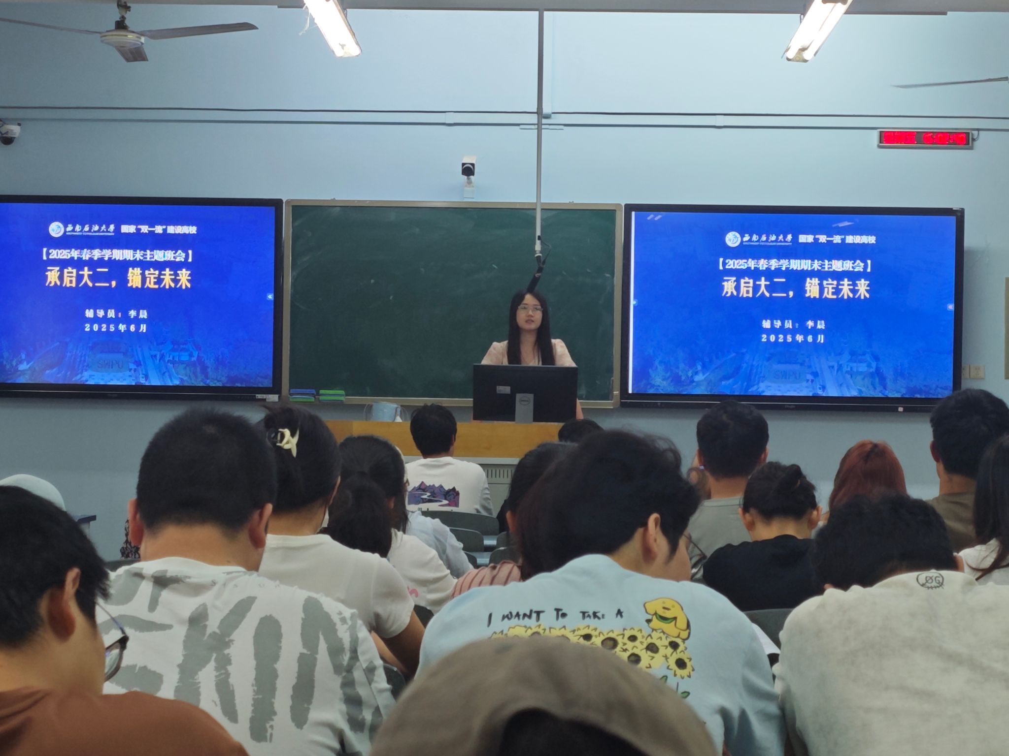 6月20日下午15:00,在博学楼A202教室,辅导员李晨为2023级国际经济与贸易专业全体同学召开“承启大二,锚定未来”期末主题班会,旨在聚焦学生成长与发展,从假期安排到未来规划,为同学们指明方向,助力大家以更饱满的状态迎接新阶段。