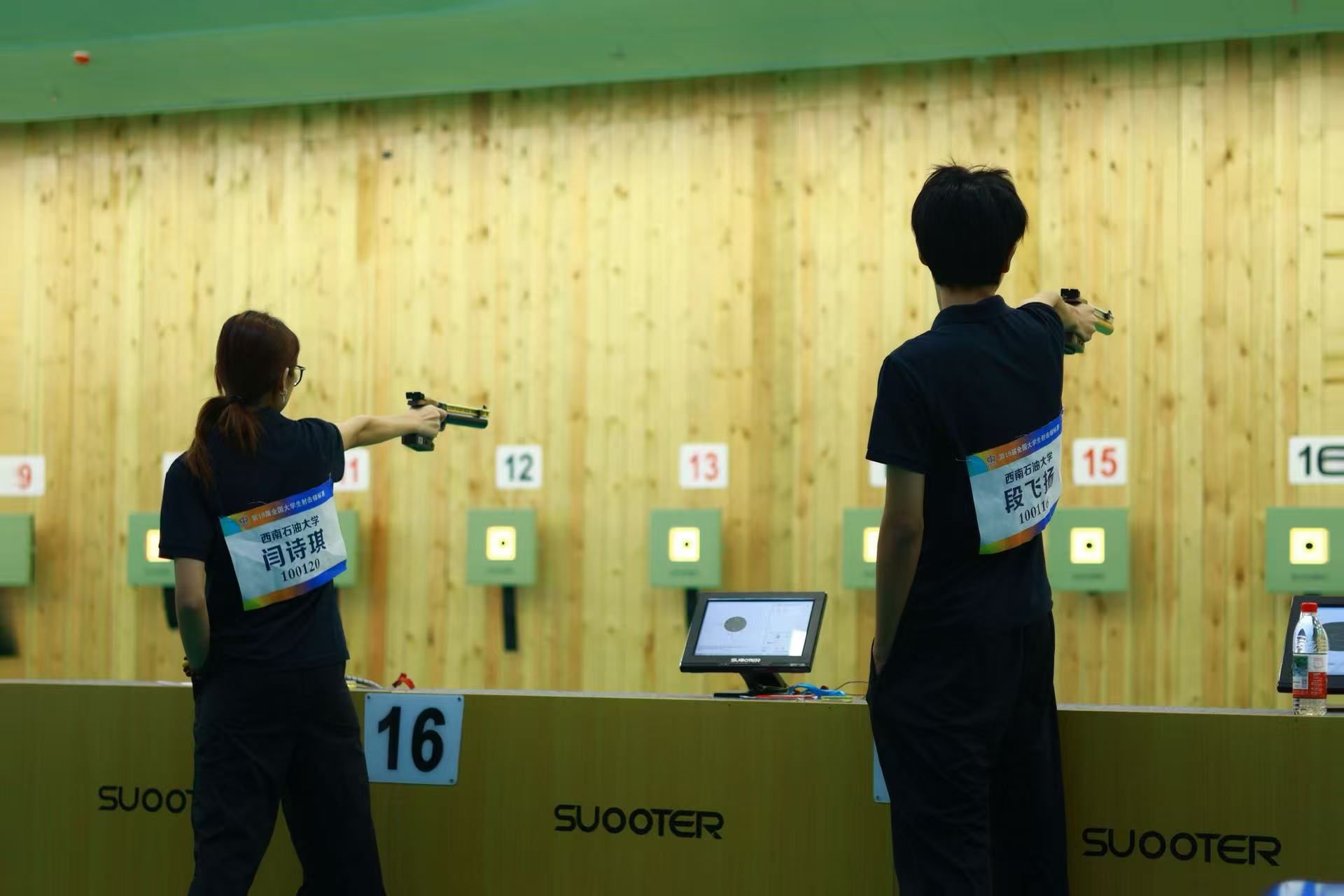 备赛过程中,在体育学院李一冰教练的指导下,闫诗琪利用暑假集训,将射击场变成延伸“课堂”。当晨光初照,她已开始反复练习持枪姿势;夏日酷暑,她专注于呼吸与扳机的精准配合,通过高强度训练,她不仅打磨出稳定的射击技术,更培养出强大的心理素质,展现石大学子的青春担当。
