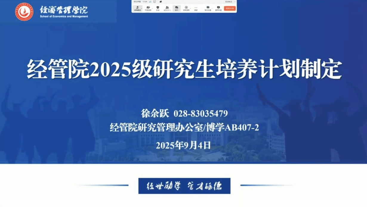 9月4日晚上7点,学院为2025级研究生举办培养计划制定专题线上讲座,由学院徐余跃老师主持,旨在帮助研究生厘清培养方案与个人发展的关联,掌握培养计划制定及研究生系统操作方法。